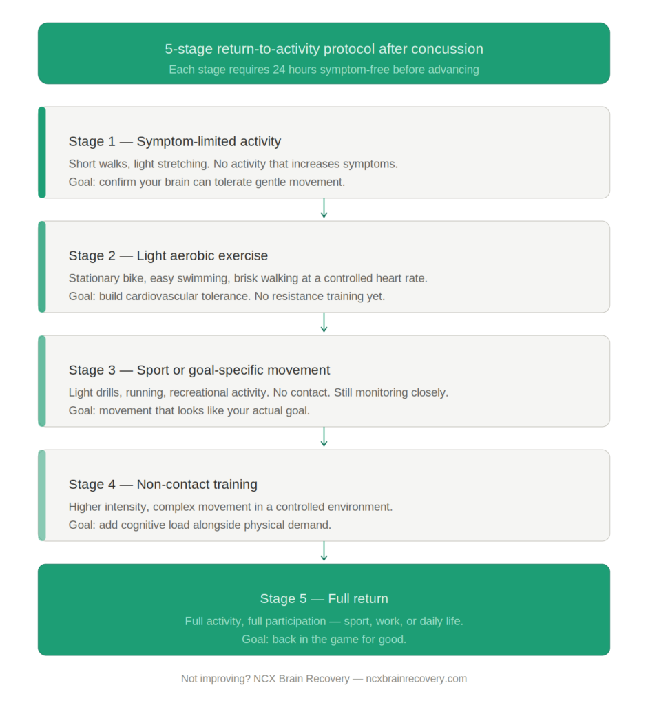 Returning to exercise after a concussion isn’t a guessing game — but it’s not a simple checklist either. The process is deeply individual, and what helps one person at six weeks post-injury could set another person back significantly. If you’ve been getting vague answers, that’s not an accident. This is genuinely one of the more nuanced parts of recovery. Here’s an honest look at what it actually involves.